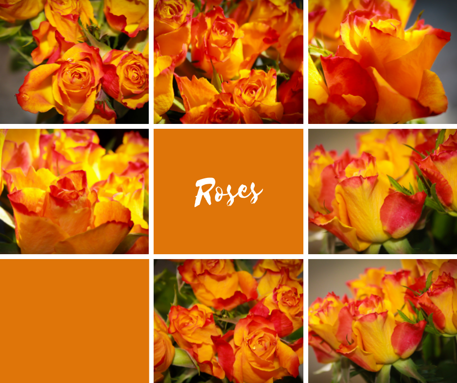 Close-up shots collection of red and yellow roses.